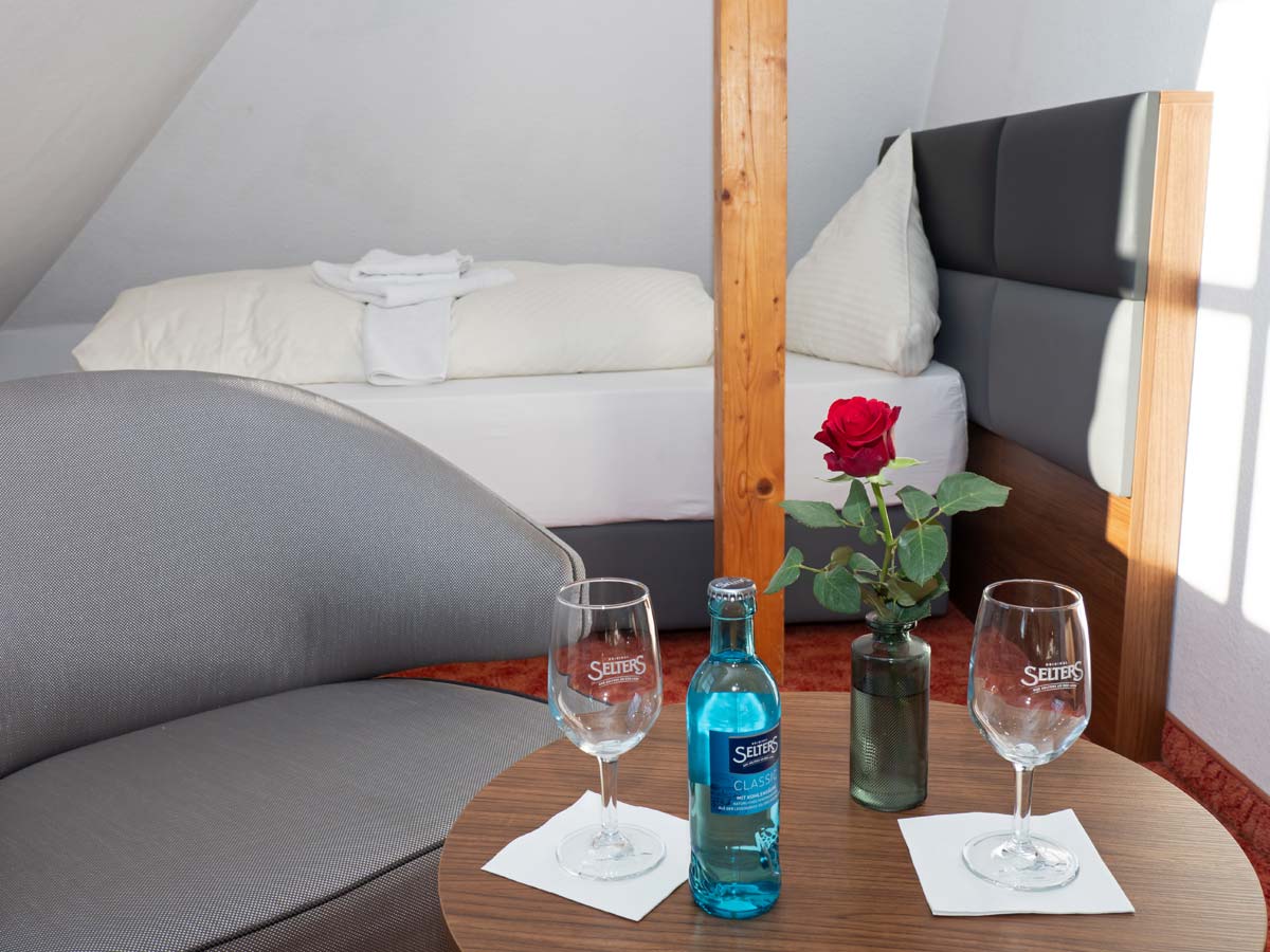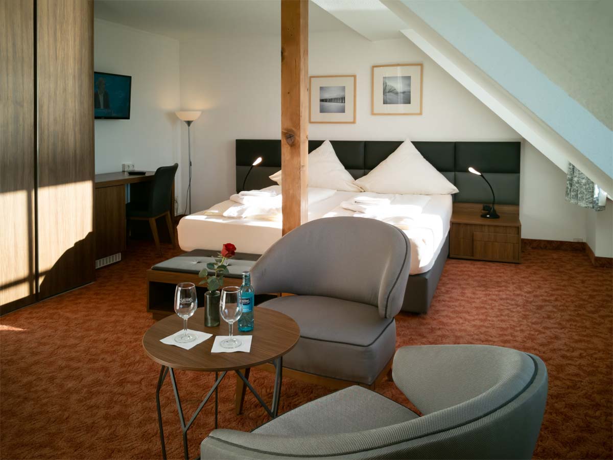 Unsere Betten haben eine Breite von mindestens 1,40 m in den Einzelzimmern und bis zu 1,80 m in den Doppelzimmern. Sie haben eine Länge von mindestens 2,00 m und sind jeweils ohne Brett am Fußende.
